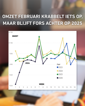 Omzet februari krabbelt iets op, maar blijft fors achter op 2025