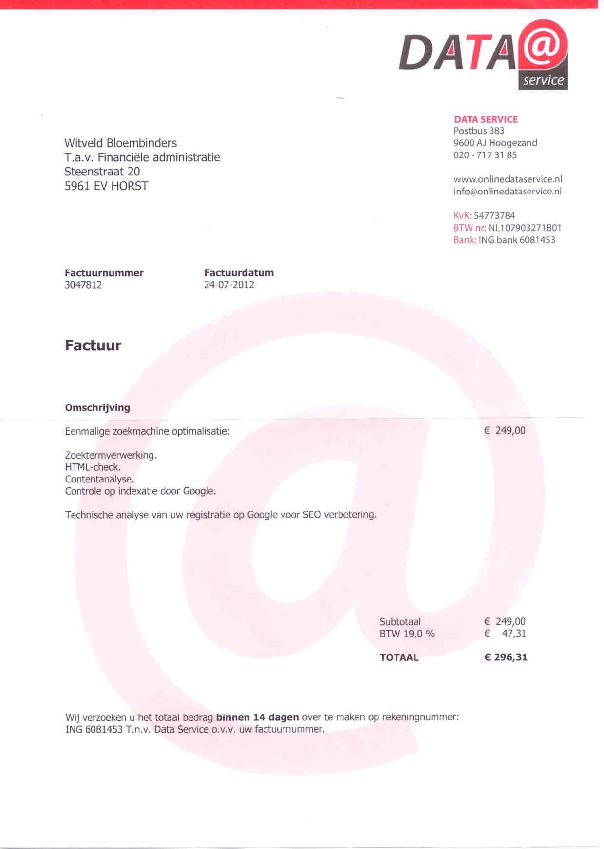 - Data Service - bekijk de nepfactuur